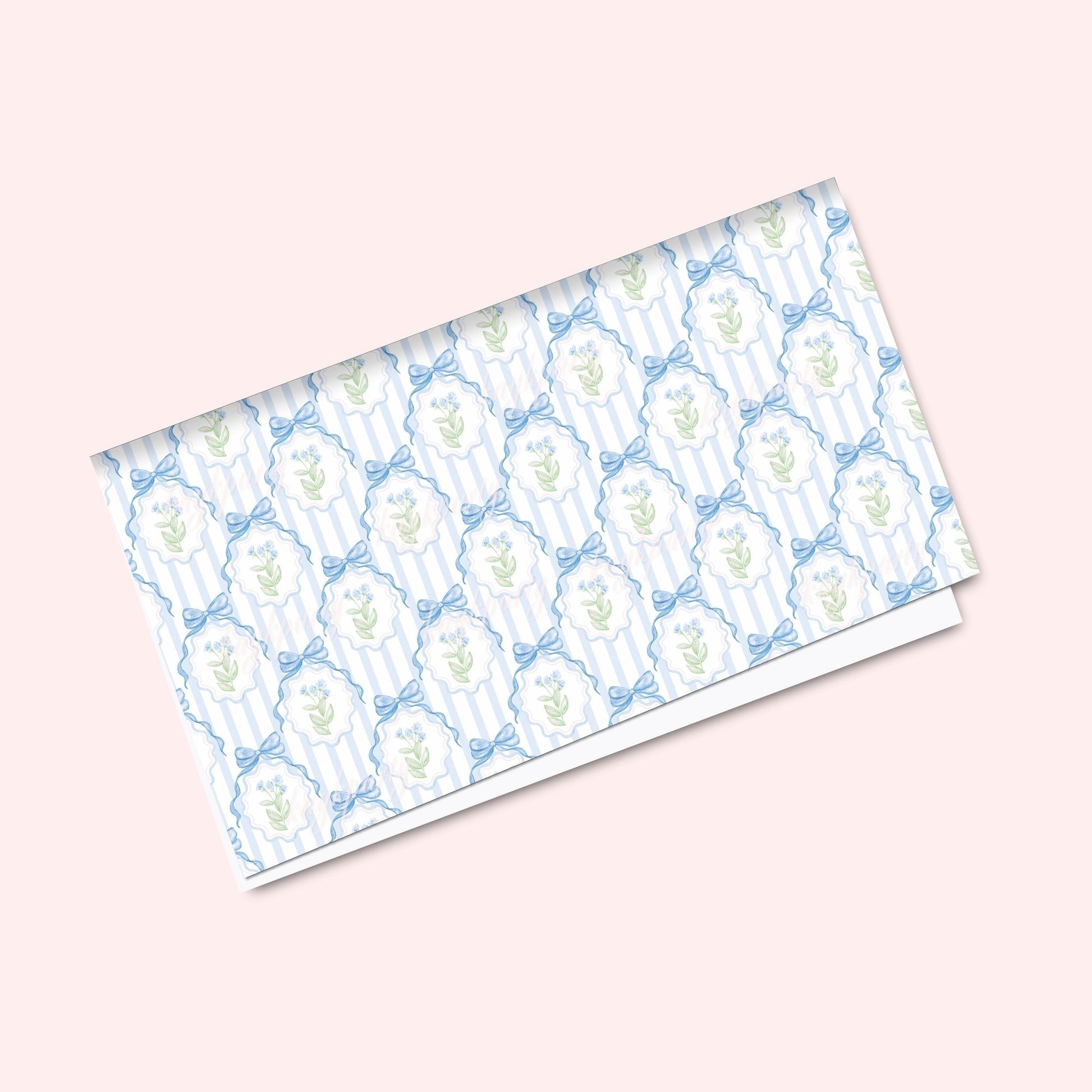 Live your best coastal grandmother life with this gorgeous wrapping paper. Beautifully designed by PrettyGrandmillennai. It features blue ticking with dainty bows. Finished with pretty flowers.
