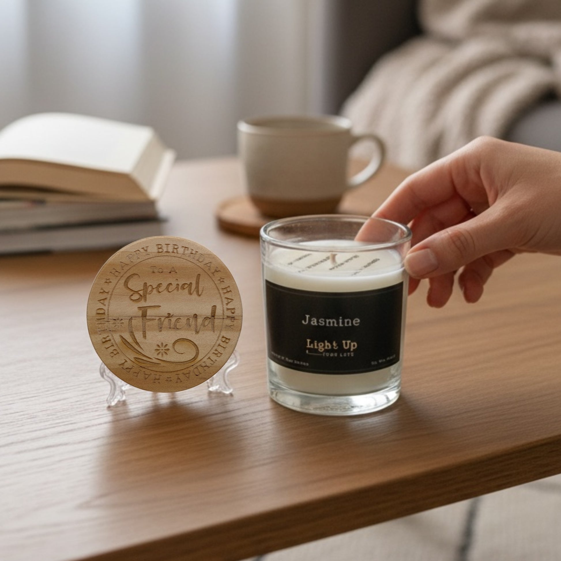 Happy Birthday to a Special Friend Candle & Engraved Lid