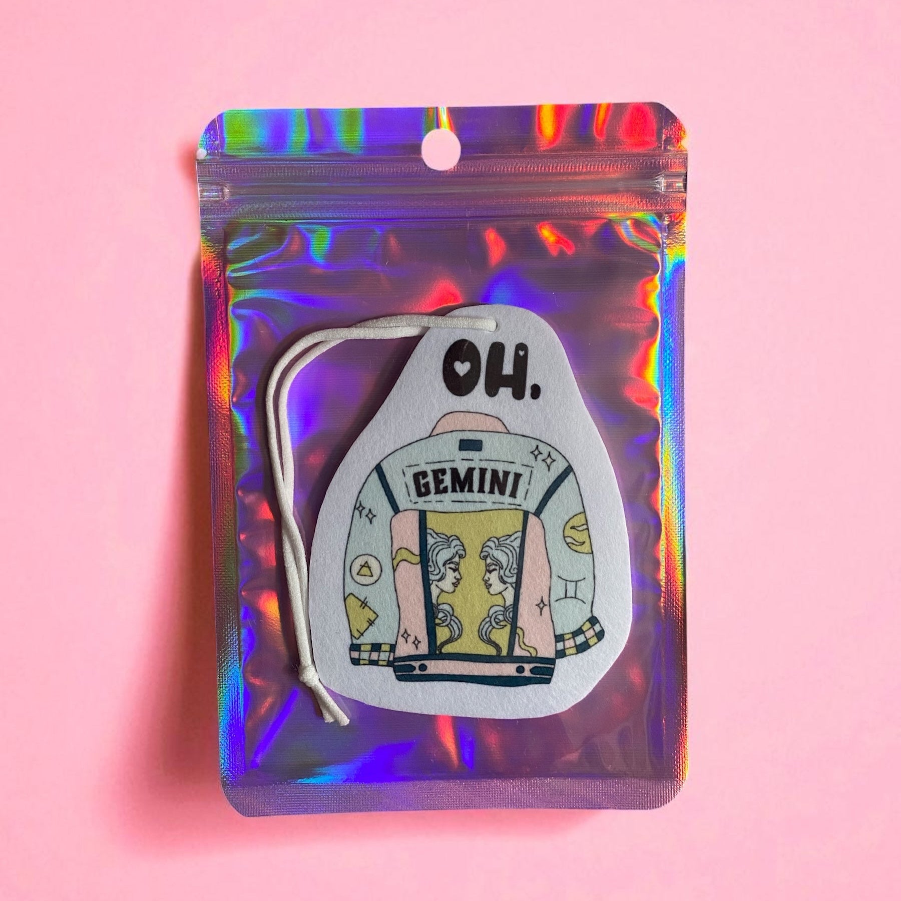 Turn every drive into a soundtrack-worthy moment with this freshie that feels just as personal as your favorite song. 🎶 Featuring a cute denim jacket illustration with Gemini-themed details and cosmic doodles, it’s a nod to self-expression, nostalgia, and some damn good tunes.