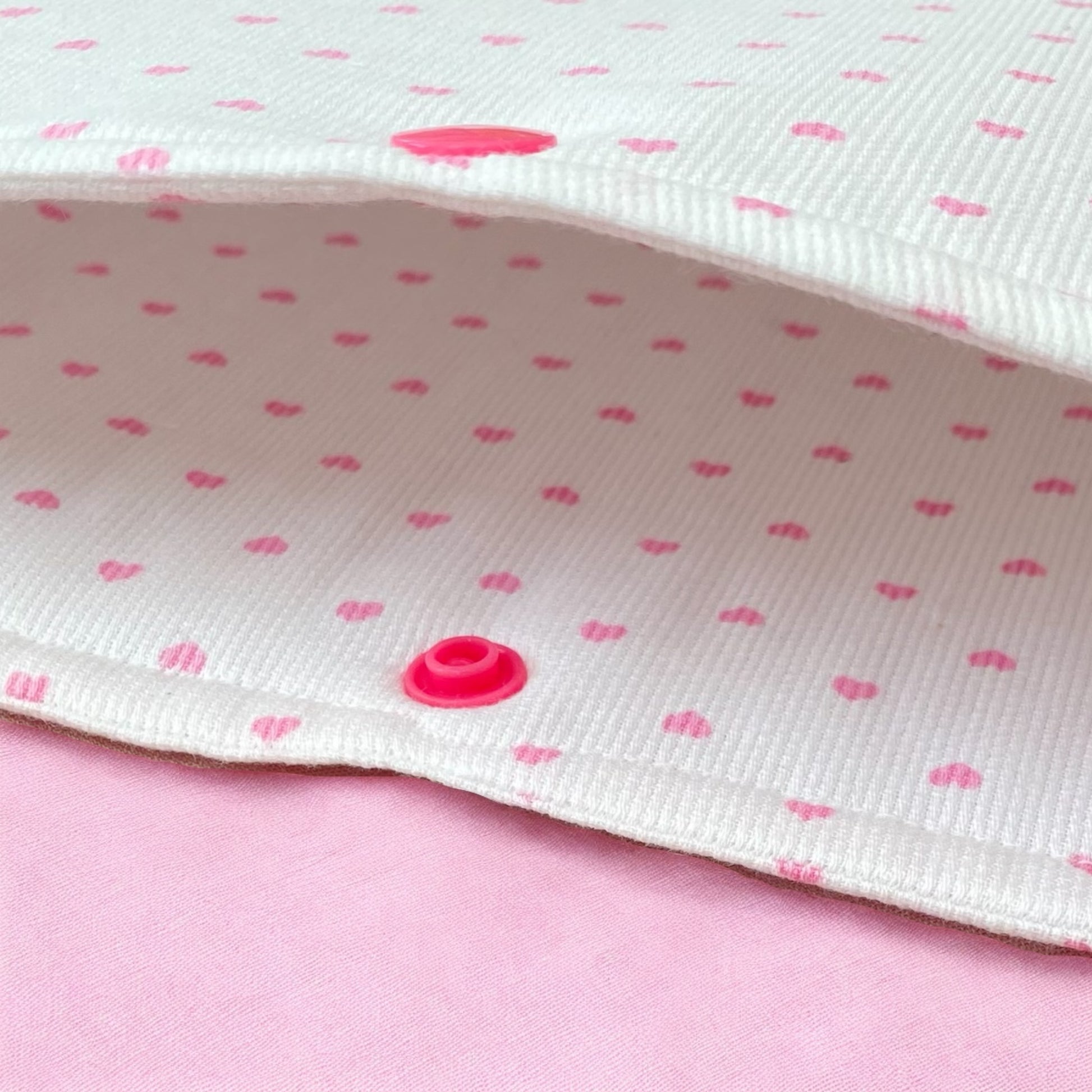 Keep your books safe and stylish with this charming Heart Print Book Pouch! Featuring a delicate pink heart pattern on a soft white cotton fabric, this pouch is perfect for book lovers who want to protect their reads from dust, spills, and damage.